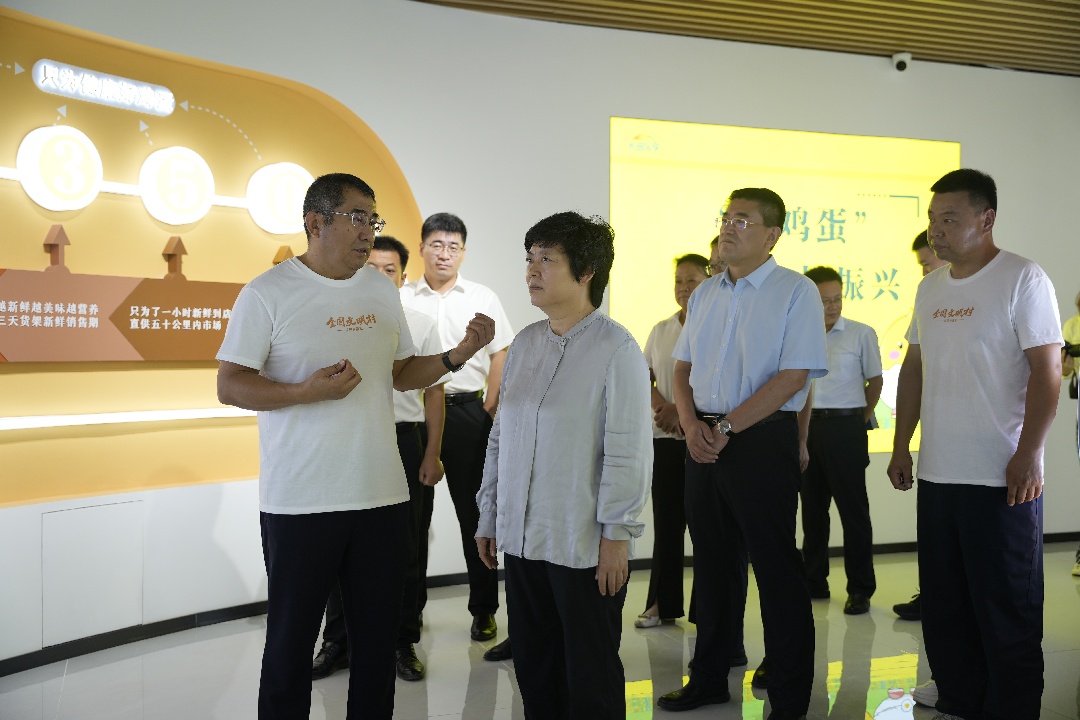 8月14日下午,區(qū)委書記秦蕾同志帶隊開展畜牧及漁業(yè)項目專項調(diào)研,首站走進長田實業(yè)旗下易豐農(nóng)業(yè)超鮮蛋農(nóng)場,實地考察蛋雞規(guī)?;腔垧B(yǎng)殖成果。區(qū)委辦公室主任李佃文、副區(qū)長董鵬、區(qū)農(nóng)業(yè)農(nóng)村局局長王興泉、濟陽街道黨工委書記蘇磊等陪同調(diào)研,長田實業(yè)董事長張勇、常務(wù)副總經(jīng)理朱寶剛?cè)膛阃⒆鰠R報。