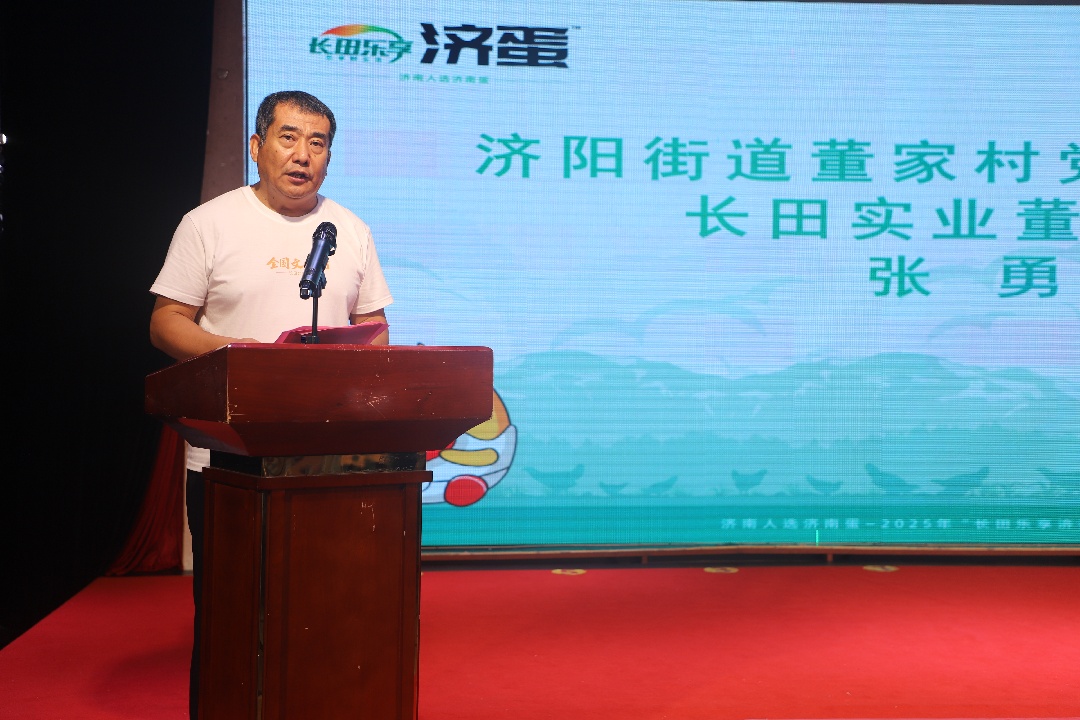 濟(jì)陽區(qū)副區(qū)長董鵬將“濟(jì)蛋”喻為品牌賦能鄉(xiāng)村振興的濟(jì)陽樣本。濟(jì)陽區(qū),作為省會(huì)濟(jì)南的“北大門”,近年來,走出了設(shè)施農(nóng)業(yè)增效之路、畜牧集群崛起之路、品牌矩陣塑強(qiáng)之路, 連續(xù)三年進(jìn)京舉辦“好味知濟(jì)”區(qū)域公用品牌推介會(huì),品牌影響力持續(xù)擴(kuò)大,濟(jì)陽農(nóng)產(chǎn)品正闊步從田間走向世界餐桌。這份成績單的背后,是廣大經(jīng)營主體的實(shí)干擔(dān)當(dāng)。他禮贊長田實(shí)業(yè)張勇董事長帶領(lǐng)團(tuán)隊(duì)在市場開拓、聯(lián)農(nóng)帶農(nóng)中的創(chuàng)新貢獻(xiàn),指出“長田樂享濟(jì)蛋”是其品質(zhì)追求的體現(xiàn),承載著濟(jì)陽農(nóng)產(chǎn)品高端化與服務(wù)美好生活的期望,并邀請來賓共同品鑒助力品牌走進(jìn)千家萬戶。