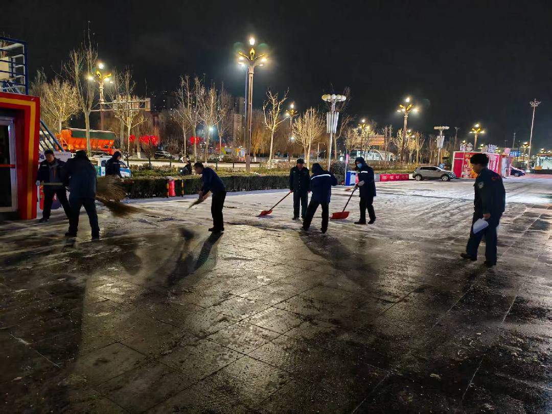長田物業(yè)華百項(xiàng)目部,趁閉店時(shí)段全力攻堅(jiān)。外圍路面的積雪與薄冰,被一一清掃、鏟除。每一次彎腰,每一下?lián)]鏟,都是為了次日商戶開門迎客、顧客安心通行的穩(wěn)穩(wěn)守護(hù)。