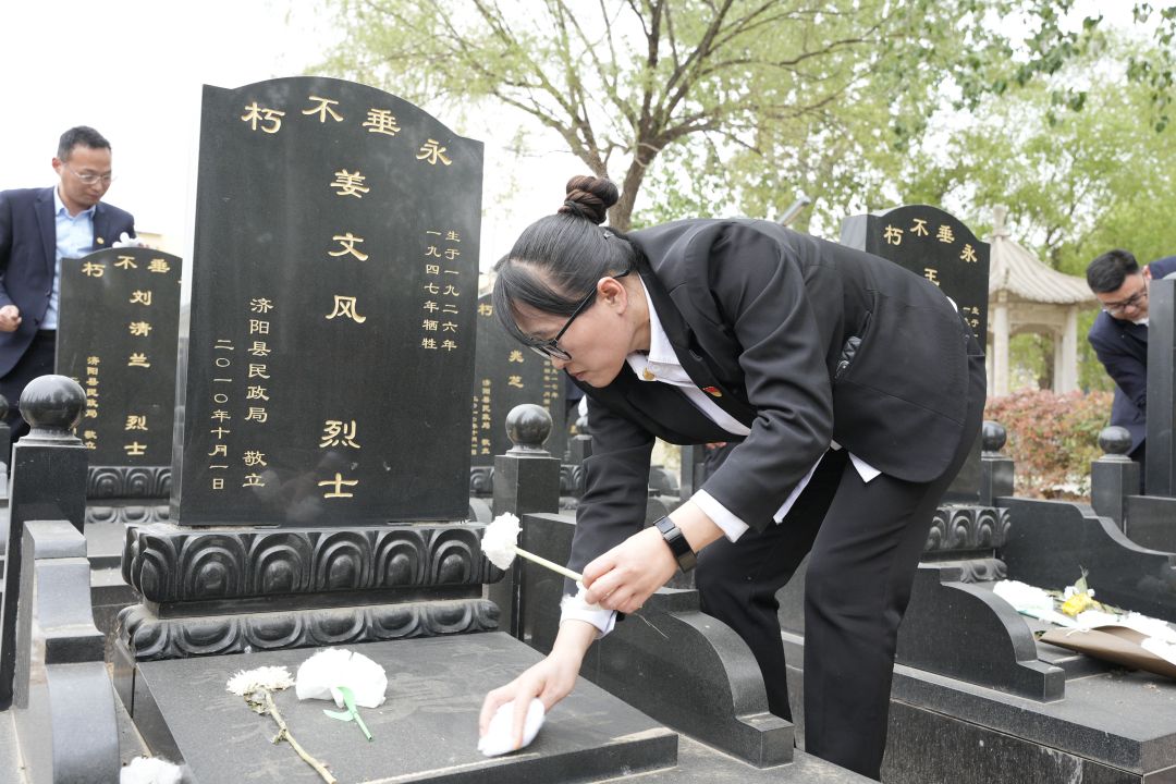 一塊墓碑、一段往事、一串印記,詮釋著一份沉甸甸的責(zé)任。大家在張總的帶領(lǐng)下清掃烈士墓區(qū),對(duì)烈士墓碑進(jìn)行仔細(xì)擦拭,對(duì)墓碑周圍的地面進(jìn)行清掃,用實(shí)際行動(dòng)緬懷革命先烈。