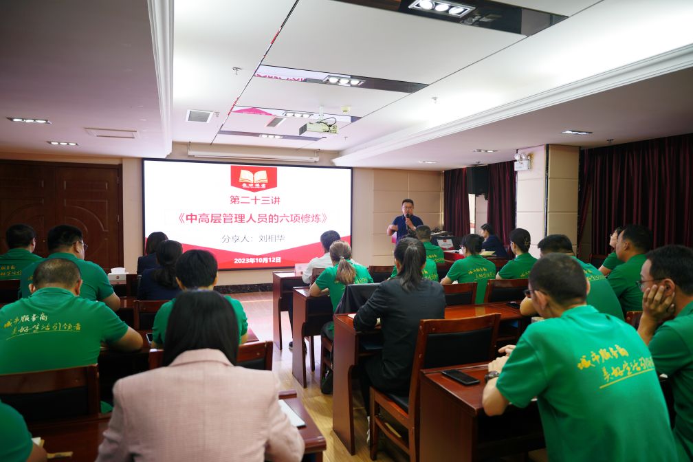 10月12日上午,長(zhǎng)田講堂第二十三講開(kāi)課,由人力資源部經(jīng)理劉相華帶來(lái)課程《中高層管理人員的六項(xiàng)修煉》。長(zhǎng)田實(shí)業(yè)黨支部書(shū)記、董事長(zhǎng)張勇,副總經(jīng)理侯淑蘭,副經(jīng)理級(jí)及以上人員,儲(chǔ)備干部共計(jì)40余人參加培訓(xùn)。行政部副經(jīng)理孫秀敏主持。
