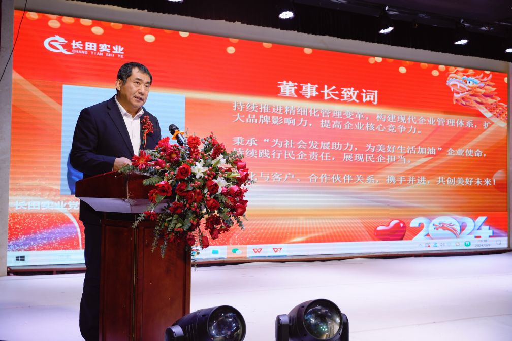 董事長(zhǎng)張勇發(fā)表致辭,他首先向在座來(lái)賓表示了最誠(chéng)摯的歡迎,并向所有關(guān)心、支持公司發(fā)展的各級(jí)領(lǐng)導(dǎo)和各界朋友,表示崇高的敬意和衷心的感謝。他講到,過(guò)去的一年,是長(zhǎng)田實(shí)業(yè)充滿挑戰(zhàn)的一年。面對(duì)復(fù)雜多變的市場(chǎng)環(huán)境,公司全體員工團(tuán)結(jié)一心、逆勢(shì)而上,堅(jiān)持品牌建設(shè)戰(zhàn)略;深入實(shí)施“一個(gè)核心 兩個(gè)提升”項(xiàng)目,深化管理體系建設(shè),推動(dòng)公司各項(xiàng)業(yè)務(wù)穩(wěn)健發(fā)展,各業(yè)態(tài)戰(zhàn)績(jī)卓越,捷報(bào)頻傳。這些成績(jī)的背后,不僅飽含著所有長(zhǎng)田人的辛勤付出和智慧,更離不開員工家屬們的理解和支持。他強(qiáng)調(diào),客戶,是企業(yè)發(fā)展的基石,是推動(dòng)我們不斷前行的核心力量?;厥走^(guò)去,我們一同經(jīng)歷了無(wú)數(shù)的挑戰(zhàn)與考驗(yàn),是你們始終如一的支持與信任,讓我們能夠堅(jiān)定信念、勇往直前;也是你們一如既往的陪伴與鼓勵(lì),讓我們?cè)谶@個(gè)競(jìng)爭(zhēng)激烈的市場(chǎng)中穩(wěn)步前行、發(fā)展壯大。他表示,接下來(lái),長(zhǎng)田實(shí)業(yè)將繼續(xù)堅(jiān)守“誠(chéng)信為本、品質(zhì)經(jīng)營(yíng)、責(zé)任發(fā)展”的經(jīng)營(yíng)理念,將大家的需求和期望作為我們工作的出發(fā)點(diǎn)和落腳點(diǎn),持續(xù)精進(jìn)提升,用更加優(yōu)質(zhì)的產(chǎn)品和服務(wù)來(lái)回報(bào)大家的信任!同時(shí),我們也將繼續(xù)踐行民企責(zé)任,積極參與公益事業(yè),展現(xiàn)民企擔(dān)當(dāng),在“強(qiáng)新優(yōu)富美高”新時(shí)代社會(huì)主義現(xiàn)代化強(qiáng)省會(huì)建設(shè)的新征程中,譜寫新的篇章!