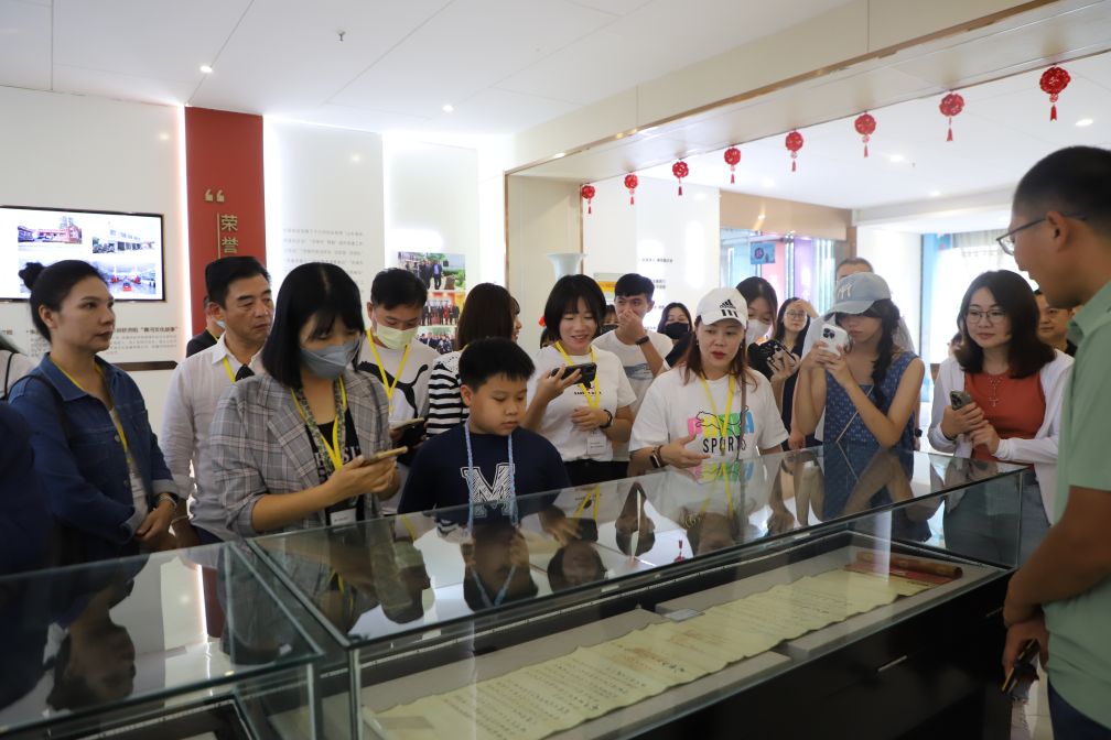 走進(jìn)長(zhǎng)田實(shí)業(yè)企業(yè)文化陣地,文化墻上一幅幅生動(dòng)的圖片和一段段詳盡的文字資料,宛如歷史的腳步,訴說(shuō)著長(zhǎng)田實(shí)業(yè)自創(chuàng)立之初到今日的每一段歷程。這些充滿感染力的畫面和文字吸引了每一位參觀的同學(xué),大家跟隨講解員的步伐,感受著這份拼搏與成就,同時(shí)也不禁為長(zhǎng)田實(shí)業(yè)的民營(yíng)企業(yè)擔(dān)當(dāng)而感到深深敬佩。