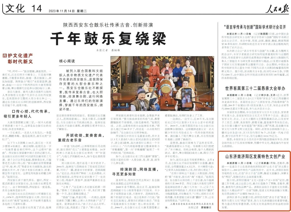 2023年11月14日,《人民日?qǐng)?bào)》特別撰文為“濟(jì)北手造”點(diǎn)贊。公司在非遺手造文化方面的工作極大的推動(dòng)了全區(qū)非遺手造文化的發(fā)展,以文潤城提升城市軟實(shí)力,彰顯民企擔(dān)當(dāng)。