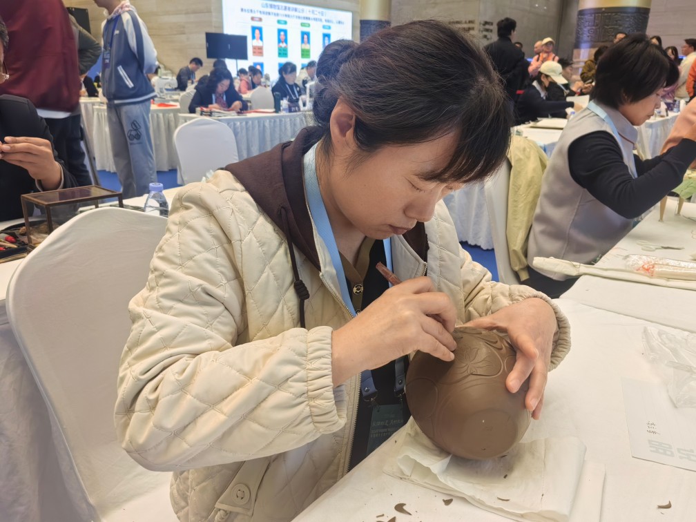 2024年10月19日—20日,由山東省文化和旅游廳指導(dǎo),濟(jì)南市文化和旅游局、濟(jì)南市人力資源和社會(huì)保障局、共青團(tuán)濟(jì)南市委主辦,山東博物館、新黃河 ? 濟(jì)南時(shí)報(bào)承辦,第八屆中國(guó)非物質(zhì)文化遺產(chǎn)博覽會(huì)2024年“技耀泉城”海右技能人才大賽——非物質(zhì)文化遺產(chǎn)手工技能大賽在山東博物館成功舉辦。20日,龍格黑陶工作人員高立香、王建參與賽事。