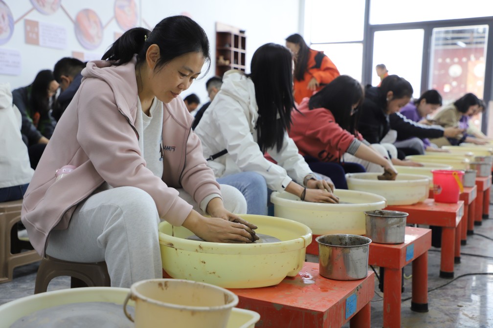 隨后,在省級(jí)非物質(zhì)文化遺產(chǎn)項(xiàng)目濟(jì)陽(yáng)黑陶制作技藝代表性傳承人徐慶增老師的指導(dǎo)下,學(xué)員們親自體驗(yàn)了黑陶制作過(guò)程,他們學(xué)習(xí)了基本技藝——拉坯,親手制作出屬于自己的黑陶作品。通過(guò)這次體驗(yàn),學(xué)員們不僅對(duì)非遺文化有了更深刻的認(rèn)識(shí),也更加珍惜和尊重傳統(tǒng)手工藝。