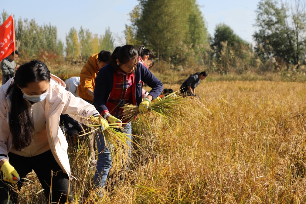 隨后,大家轉(zhuǎn)戰(zhàn)稻田,感悟“金秋”豐碩的“勞動(dòng)精神”,在稻谷飄香中摘取“為民”的碩果。割水稻是一項(xiàng)技術(shù)活,需要彎腰、揮刀、捆扎,每一個(gè)步驟都不能馬虎。盡管腰酸背痛,但大家依然咬牙堅(jiān)持,沒(méi)有一人退縮。在勞動(dòng)中,大家深刻體會(huì)到了農(nóng)民的不易,也更加堅(jiān)定了為鄉(xiāng)村振興貢獻(xiàn)力量的決心。