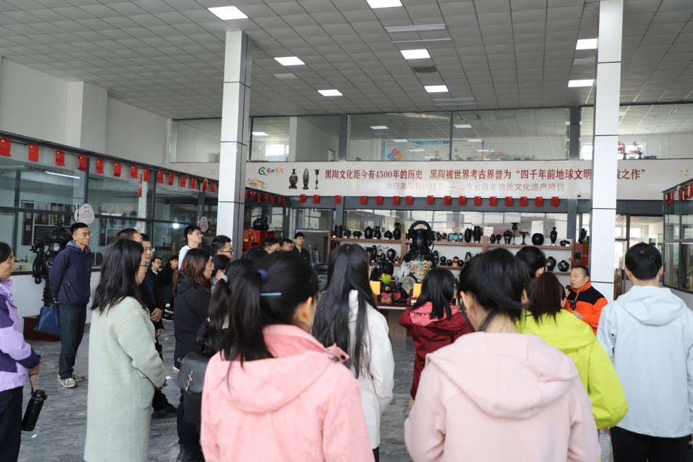 在龍格黑陶藝術(shù)研究院的展館里,學(xué)員們欣賞了各種精美的黑陶作品,了解了黑陶的制作工藝和歷史背景。