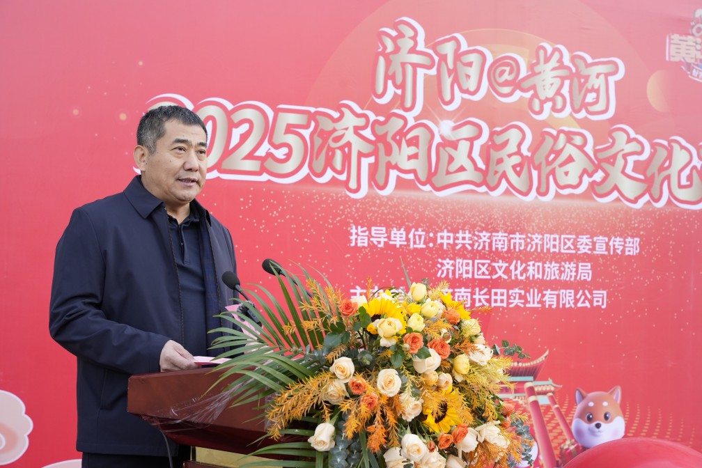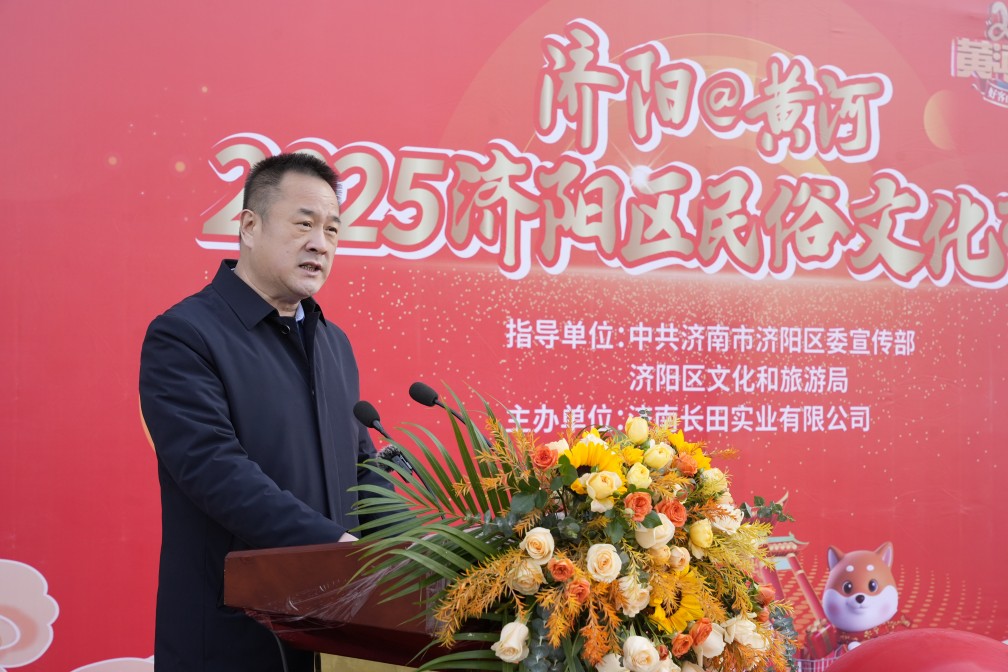 張總發(fā)表講話,他講到,民俗文化是一個(gè)民族的精神脊梁,是我們共同的根與魂。在濟(jì)陽這片古老而又充滿魅力的土地上,孕育了豐富多彩的民俗文化。巧奪天工的濟(jì)陽黑陶、農(nóng)民畫、木作等傳統(tǒng)手工技藝,香氣撲鼻的垛石驢肉、小磨香油,喜慶吉祥的糖畫等,都彰顯著濟(jì)陽人民的智慧與創(chuàng)造力,承載著濟(jì)陽深厚的歷史底蘊(yùn)與獨(dú)特的文化魅力。他希望,能夠通過本次民俗文化市集活動,為市民搭建一個(gè)深入了解、體驗(yàn)濟(jì)陽民俗文化的平臺,讓更多人了解濟(jì)陽的文化底蘊(yùn),在這場接地氣的市集活動中感受別樣的年味氣氛,體驗(yàn)到文化的滋養(yǎng)。