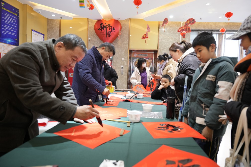 此外,在活動現(xiàn)場,濟(jì)陽區(qū)總工會主持“送萬福 進(jìn)萬家”書法公益活動,邀請書法家現(xiàn)場寫春聯(lián)、贈春聯(lián)、送“福”字,用筆墨丹青為廣大市民送上新春的美好祝福。