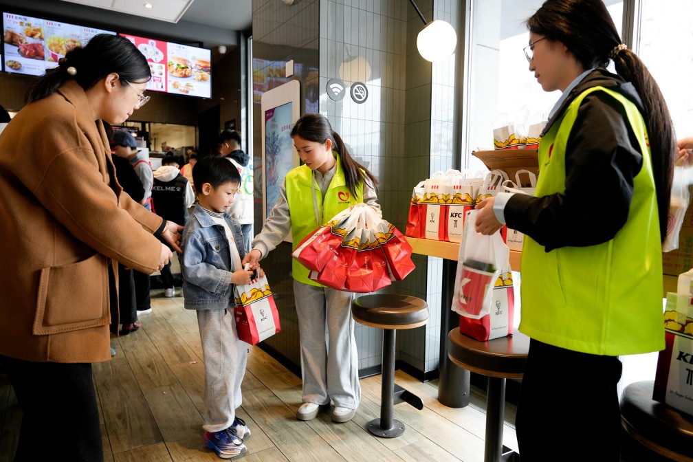 觀影結(jié)束后,肯德基正安路餐廳店為孩子們精心準(zhǔn)備了兒童套餐。“哇,是肯德基!”孩子們興奮地喊道,眼睛里閃爍著興奮的光芒??系禄墓ぷ魅藛T細(xì)心地為孩子們服務(wù),確保他們能盡情享受這次特別的用餐時光。