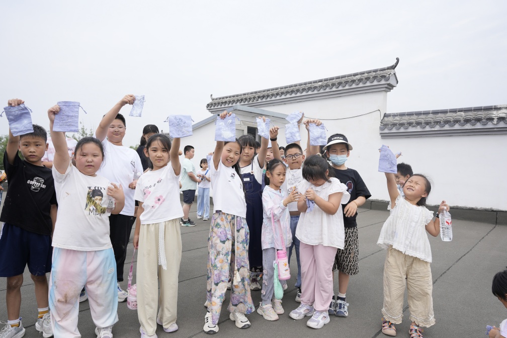 扎染工坊內(nèi),孩子們化身為小小的藝術家。他們用手中的染料和布料,大膽地揮灑著自己的創(chuàng)意,將原本素白的布料染成藍白相間的圖案,仿佛將天空與大海的美麗濃縮其中。每一塊布料都承載著孩子們的奇思妙想,展示著他們對色彩與美的獨特理解。