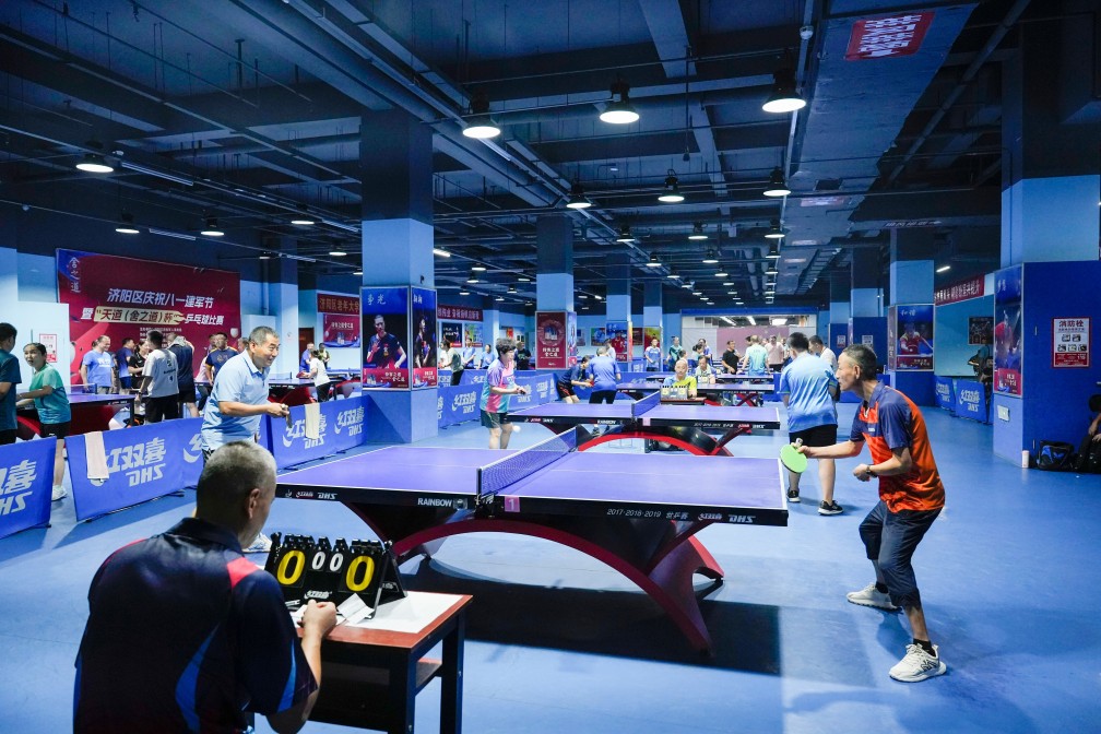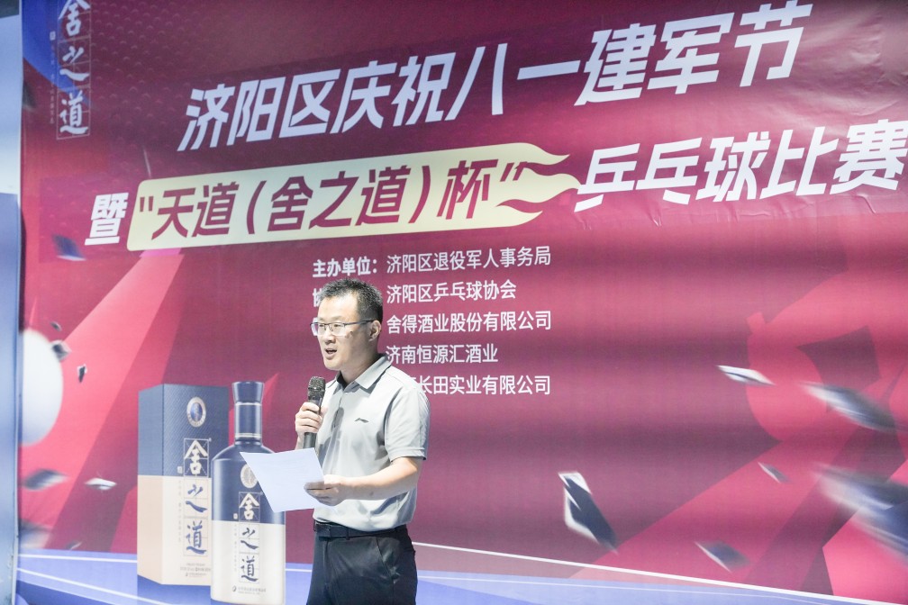 7月27日上午,濟陽區(qū)文化藝術(shù)中心乒乓球館內(nèi)熱鬧非凡,銀球在空中飛速穿梭,喝彩聲此起彼伏。由濟陽區(qū)退役軍人事務局主辦,區(qū)乒乓球協(xié)會承辦,濟南恒匯源酒業(yè)(舍得酒業(yè)股份有限公司)、濟南長田實業(yè)有限公司贊助的“慶祝八一建軍節(jié)暨‘天道 (舍之道) 杯’乒乓球比賽” 在此盛大啟幕。